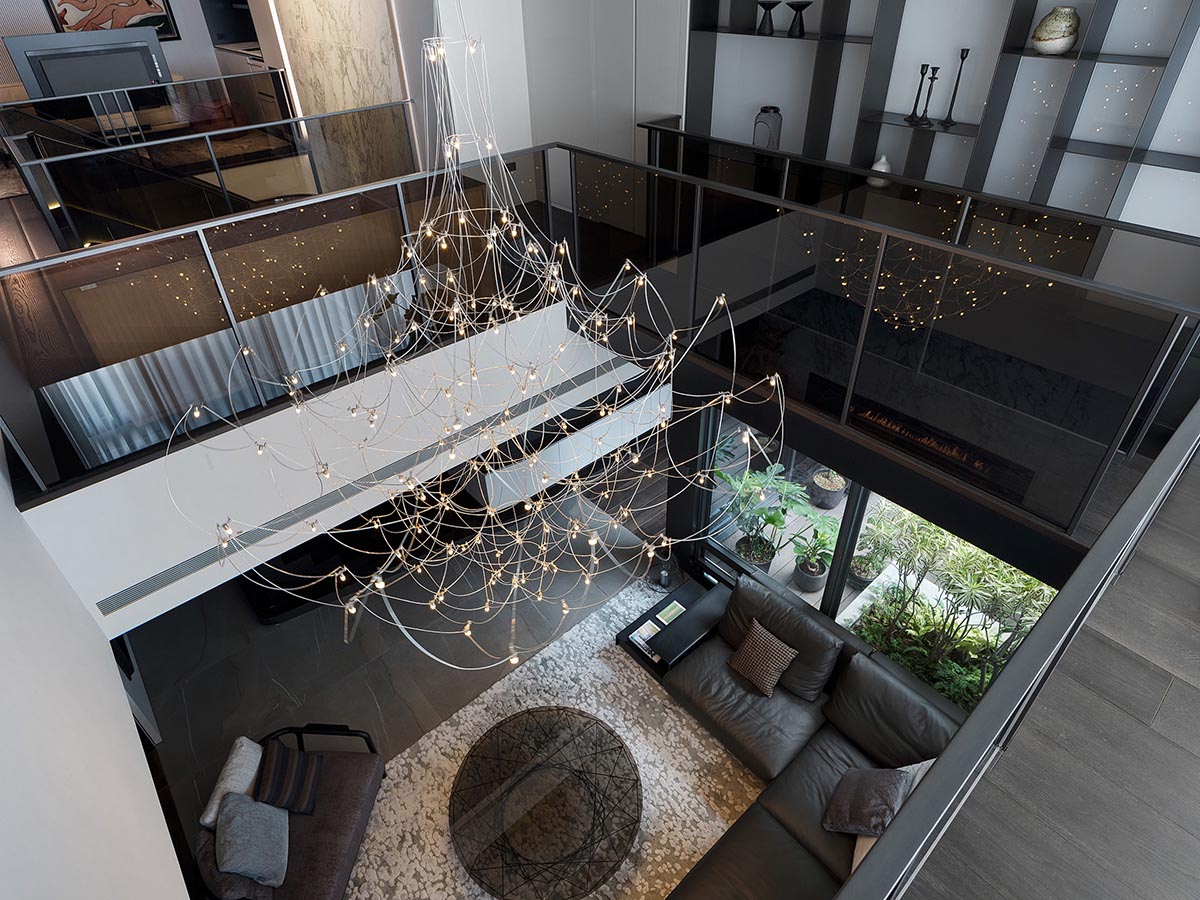 将串连上下的楼梯重新布局,以最佳曲度结合线性切割,当光线倾泻而下落在透光玻璃,照亮空间,时光仿佛定格于此而想像却无限延伸。拾级而上,每一个转折皆进退有据、收放自如,既拥有挑高视野又能置身于翠绿的怀抱,移动中私藏每一寸光景。