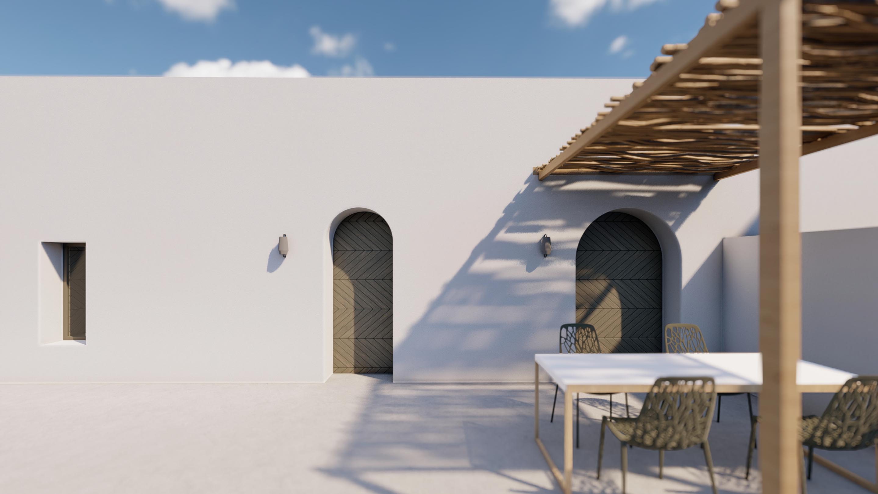设计的主要目标是保护建筑免受西北风的影响,并尽可能享受大海和地中海火山的景观视野,以及完善住户之间的私密性。岩石地块朝北,暴露在当地的强西北风中。设计师通过将主建筑体量划分为较小的体量,以保护它们不受强风影响,但突出大海和基克拉迪的景色。
