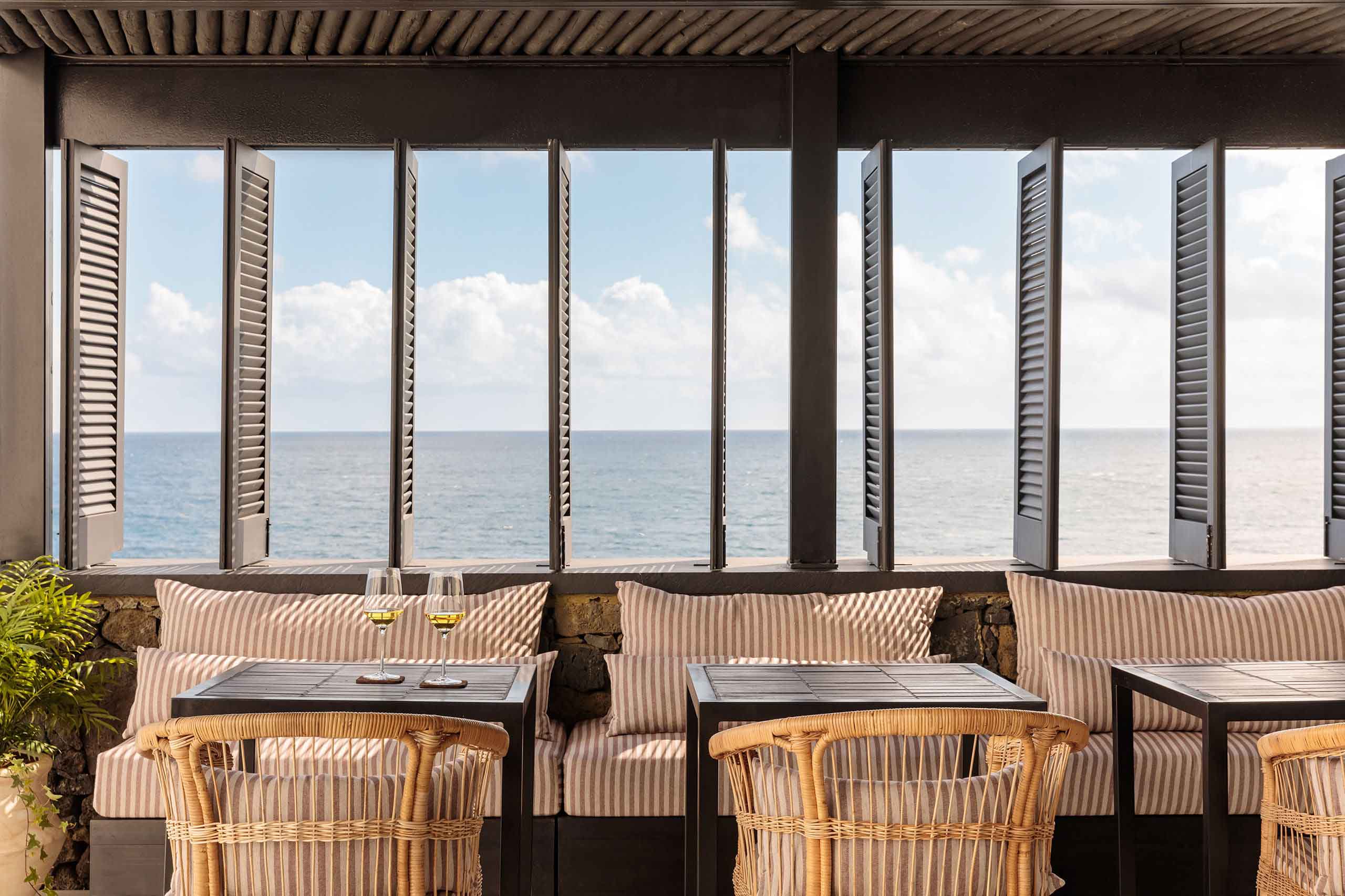 酒店的装修延伸到其室外空间,包括不同的露台和楼层、一个火坑和一个加热的咸水无边泳池,该泳池经过翻新,黑色底部让人联想到岛上的火山海滩。一个古老的凉棚被改造成一个有遮蔽的休息区,即使天气不好,客人也可以在户外享用早餐、午餐或晚餐,而独立的凉亭则让客人有机会在一个僻静的地方享受一系列的健康护理。