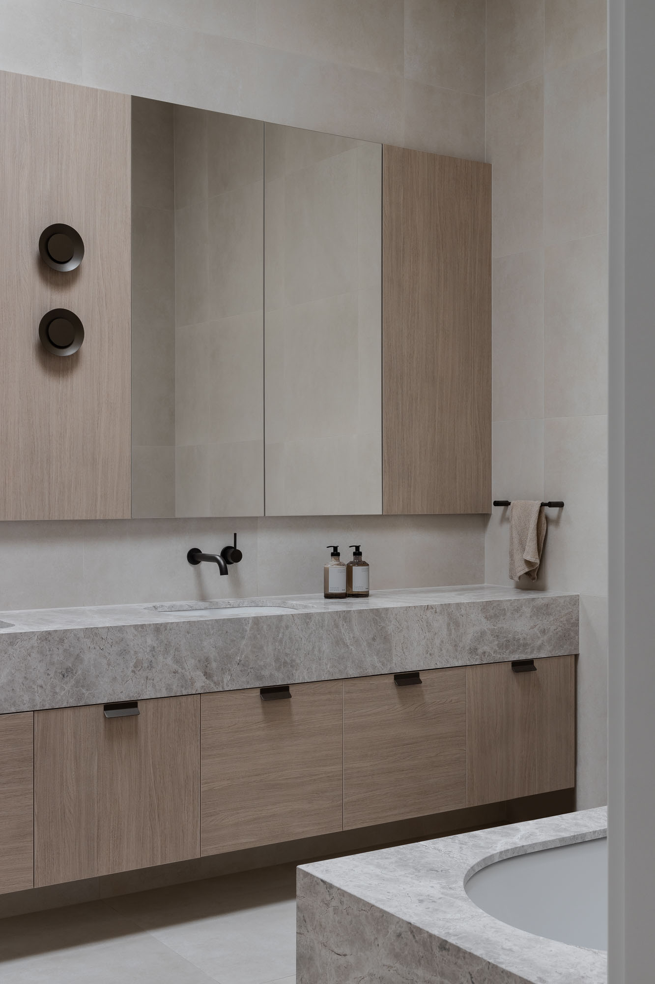 平衡了日常生活的实用性和高雅的奢华。新的室内装修改造了现有的住宅,为业主即将到来的篇章打造一个理想的背景。作为品味的反映和生活阶段的陈述,物质性结合了自然的焦点和需要最少维护的选择。设计师提出了一个通过线性元素表达的最小调色板和一个持久的决心,以创造一种提升家庭日常体验的方法。